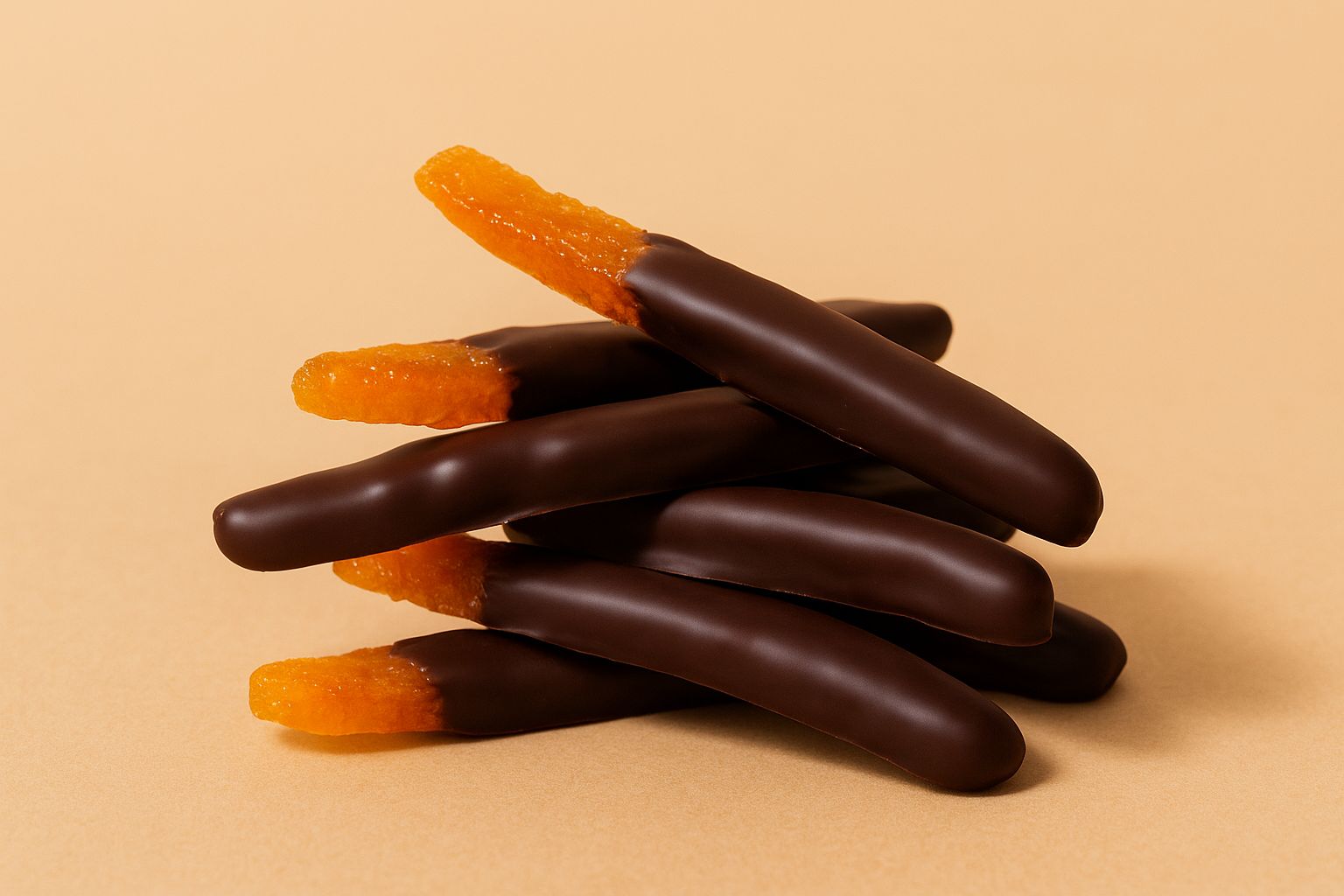 Scorzette di arancia candita ricoperte di cioccolato fondente al 70% Ecuador